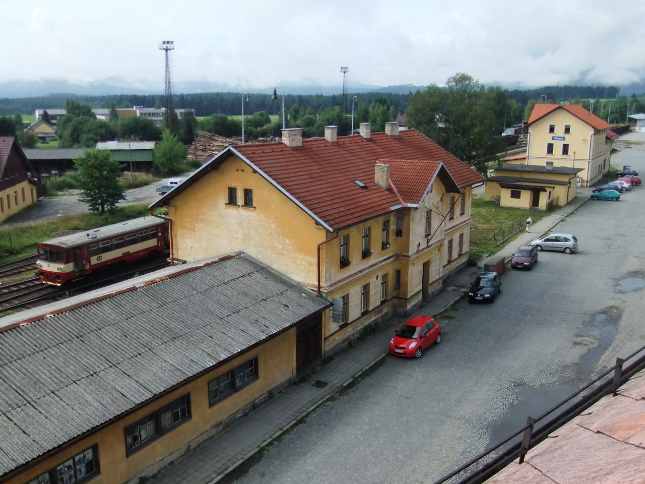 Volary - pohled na nádraží z hotelu Chata